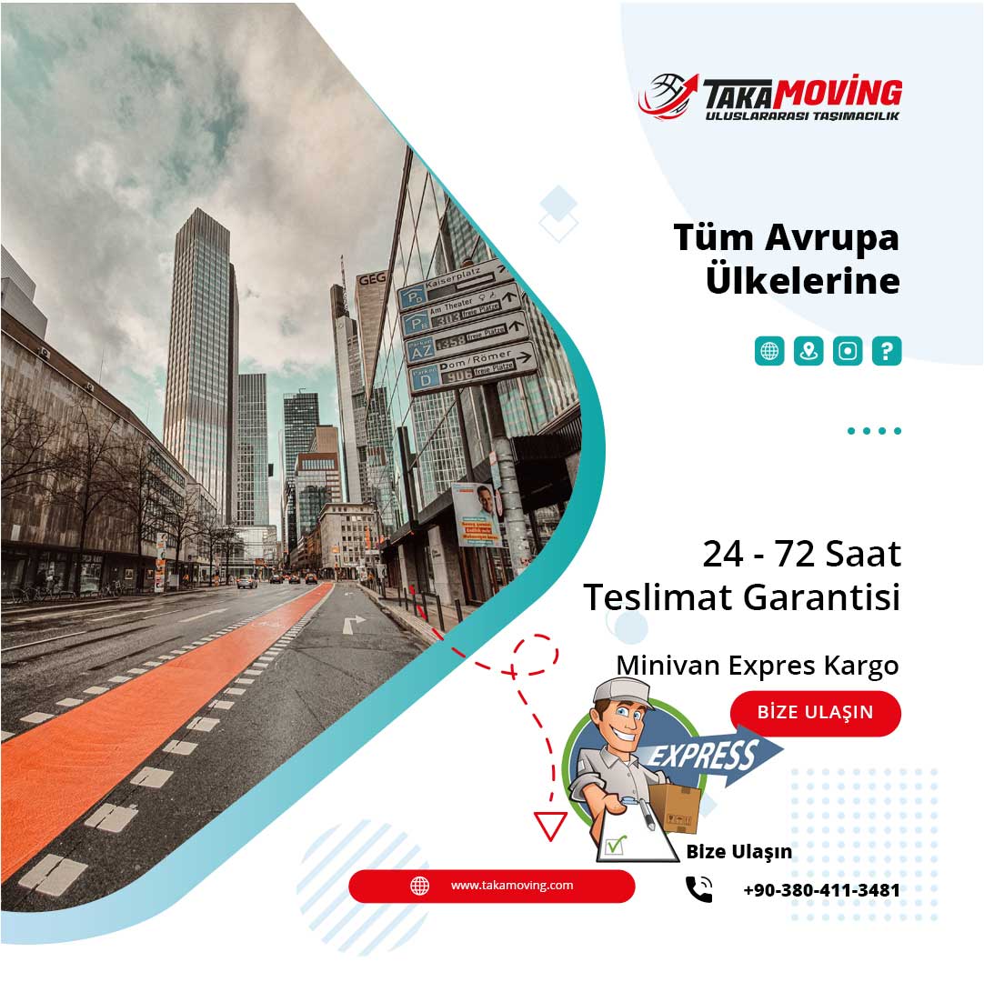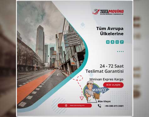 Minivan 15 ve 17 m³ araçlarımız ile Avrupa ülkelerine 24-36-48-72 saat gibi kısa sürede Express Kargo Hizmeti.